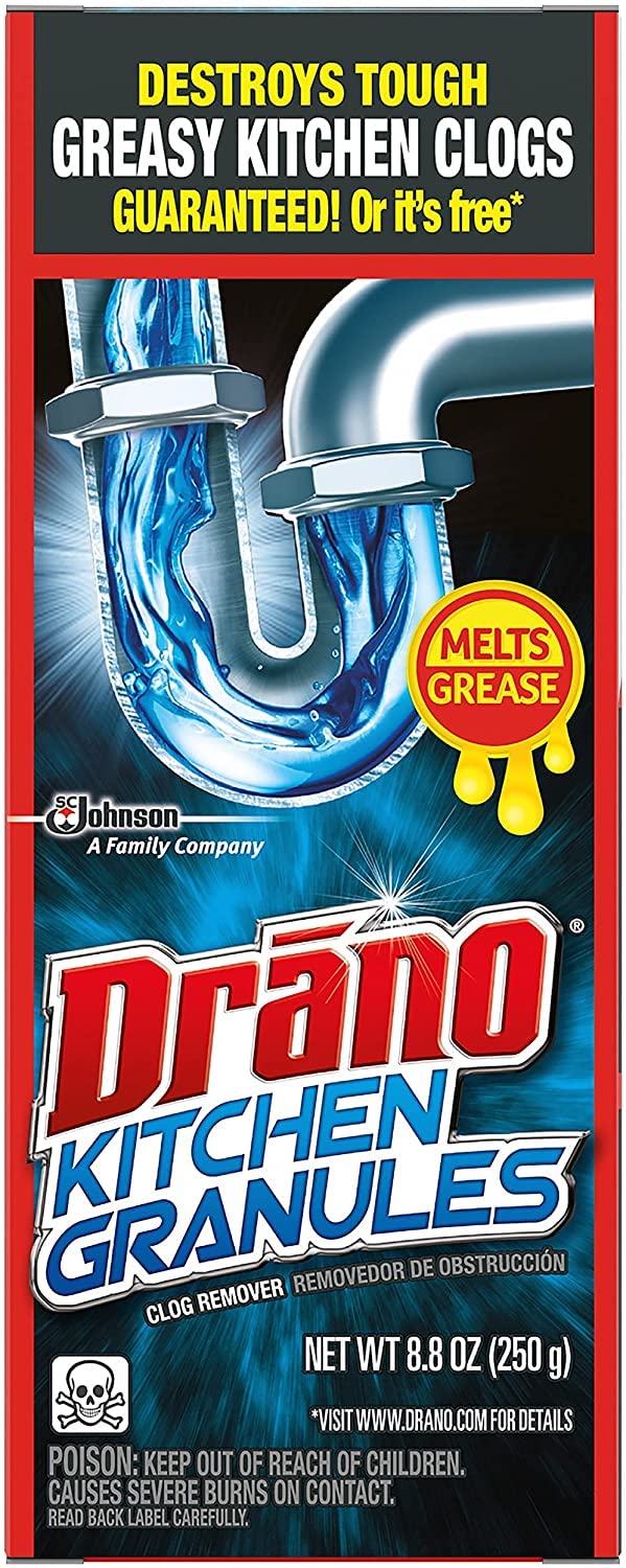 Amazon Com Drano Kitchen Granules Drain Clog Remover And Cleaner Unclogs Blockage From Grease Or Cooking Oil 8 8 Oz Health Household